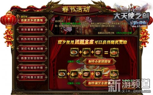 在外打拼的人們,每年期待的當然就是回家與家人吃一頓團圓飯,在37《大天使之劍》中,也準備了團圓飯等著玩家哦!【合家歡樂團圓飯】玩法里,玩家在野外地圖和奇跡大陸擊殺怪物,將有機會掉落各種菜肴,使用菜肴可獲得獎勵,菜肴是制作團圓飯的必備材料,享用團圓飯可隨機獲得獎勵哦!