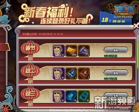 為了對玩家們的支持與鼓勵表示感謝,37《航海王OL》準(zhǔn)備了特別的新春福利獻(xiàn)給特別的你們。從年初一(2月16日)開始至年初七(2月22日),每日只要登錄游戲,就可以得到新角色飛魚騎士碎片、訓(xùn)練券、設(shè)計圖、偉大航路抽卡券等稀有道具。