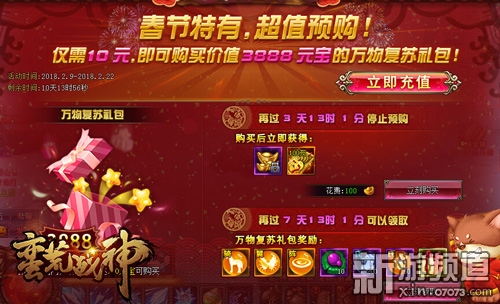 新年有壕禮,春節(jié)有福利!為了回饋各位蠻荒勇士一年來的努力,《蠻荒戰(zhàn)神》特別推出超值預(yù)購活動(dòng),只需10元即可購買價(jià)值3888元寶的萬物復(fù)蘇禮包,內(nèi)含金色符魂、異獸之魂、靈力之元等珍稀材料,千萬不要錯(cuò)過哦!目前距離預(yù)購結(jié)束還有1天,趕緊登陸游戲搶購吧!