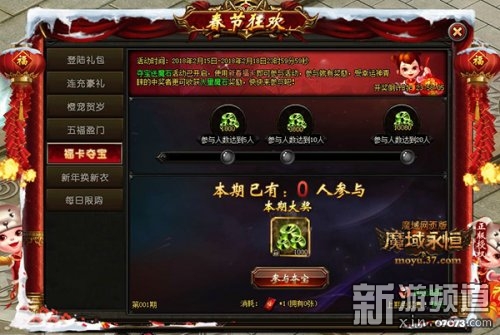 我恭喜你發(fā)財(cái),我恭喜你精彩……禮多人不怪;過(guò)大年,吃好喝好一切皆好,《魔域永恒》為冒險(xiǎn)者們準(zhǔn)備了超值拜年豪禮,所有玩家都可參與到這場(chǎng)全民狂歡之中。在活動(dòng)期間,每天登陸游戲即可領(lǐng)取驚喜獎(jiǎng)勵(lì),我們?yōu)槟鷾?zhǔn)備了各色各樣的道具物品,讓你的狗年魔幻冒險(xiǎn)幸福滿分。
