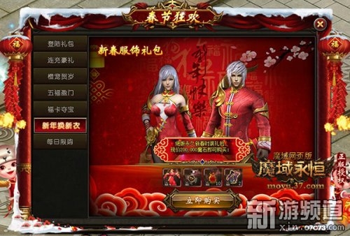過(guò)年啦!37《魔域永恒》在這里祝大家新年大吉,萬(wàn)事如意。當(dāng)然更少不了精彩的拜年福利活動(dòng)。2月14日~2月18日,橙寵拜歲大饋贈(zèng),五福盈門(mén)豪禮到?;顒?dòng)期間登錄游戲,領(lǐng)取新春禮包,更有新年時(shí)裝—“鴻運(yùn)炎彩”絢麗登場(chǎng)……精彩不停歇,活動(dòng)嗨起來(lái)!