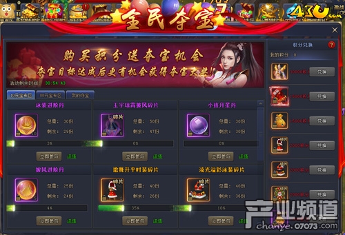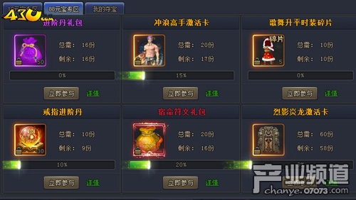 在43u《鴻蒙天尊》全民奪寶10元寶專區(qū),玩家花費(fèi)10元寶就可購買20積分,并送指定寶物的1點(diǎn)奪寶份額。在88元寶專區(qū)花費(fèi)88元寶購買176積分也送指定寶物的1點(diǎn)奪寶份額哦!