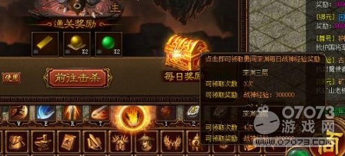 關(guān)于勇闖深淵,小編已經(jīng)闖到了第三層的第1關(guān)。那又怎樣?當然是有好處的,看右側(cè)底部金光燦燦每日可以領(lǐng)取的三次獎勵,到底是什么樣的獎勵?我們還是通過開啟寶箱來查看吧。目前所在的深淵三層可以領(lǐng)取3次,每次可以領(lǐng)取戰(zhàn)神經(jīng)驗300000,如果能闖到4層則還可以多拿20000的戰(zhàn)神經(jīng)驗值。原來這就是閃耀著金色寶箱的每日獎勵,傲天金裝傳奇小編曾一度以為要么是金錢或者材料。戰(zhàn)神的確也應該好好提升一下,才能在未來的日子中如虎添翼。