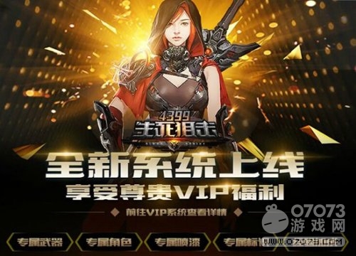 喜大普奔,《4399生死狙擊》全新VIP系統(tǒng)正式與廣大玩家見面啦!只要累積充值金幣達(dá)到對應(yīng)“VIP等級”即可獲得海量特權(quán)豪禮,更多詳情可點(diǎn)擊游戲內(nèi)“左上角”-“VIP標(biāo)識”查看了解。你的身份,從此大不同!