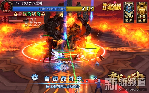 封印于地獄的毀滅之神再度復(fù)活,化身世界BOSS重現(xiàn)人間!這一次,獲得更強(qiáng)大魔力的它覺醒了終極必殺技【毀滅之眼】,可以召喚一大片隕石從天而降,造成大范圍殺傷,BOSS等級越高,每顆隕石的傷害越高,高階BOSS更是能一擊瞬秒玩家,一不小心就是團(tuán)滅的下場!
