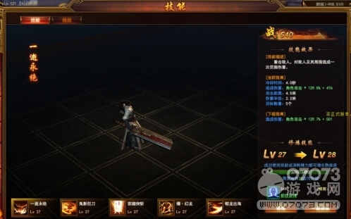 技能界面包含角色技能的詳細信息,技能介紹、技能等級、技能動態(tài)、技能效果。技能升級需要消耗精力,精力可通過主線和支線任務(wù)獲得,除此之外還可通過攻城略地玩法獲得。技能界面中是游戲角色的基礎(chǔ)技能,角色基礎(chǔ)技能共有五個。絕技界面包含人物絕技的介紹、效果、動態(tài)、屬性加成。絕技可通過參與擊殺世界Boss獲得,擊殺不同世界Boss獲得對應(yīng)的絕技。絕技是擊殺世界Boss后獲得強力技能十分稀有。