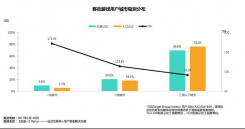 根據(jù)《2025全球移動游戲產(chǎn)業(yè)白皮書》中的相關(guān)數(shù)據(jù),當(dāng)前國內(nèi)移動游戲市場呈現(xiàn)出“一二線城市用戶集中度偏高,三線及以下城市人口基數(shù)龐大,用戶集中度卻并不高”的態(tài)勢——這也即意味著,中國移動游戲人口紅利雖在一二線城市消失殆盡,但在三線以下城市卻仍然有待挖掘。