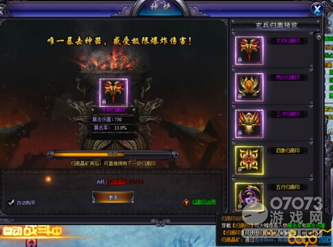 后面兩種有赤炎閃電:攻擊時10%幾率觸發(fā)赤炎閃電,連續(xù)攻擊5個目標(biāo),對手個目標(biāo)附加1000點傷害,之后每個目標(biāo)傷害逐漸降低,這個技能。而每種歸離印增加的屬性也不一樣,歸離印的升級是通過歸離晶礦兌換獲得,歸離晶礦可以通過擊殺BOSS或者在商城購買。