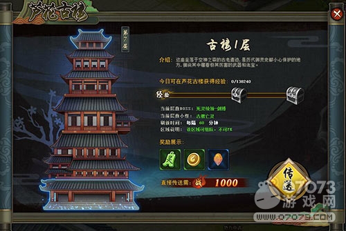 蘆花古樓前三層是不可PK區(qū)域,后面的都是可以進行PK的,每層BOSS刷新時都會在世界發(fā)布消息,玩家可以進入擊殺。蘆花古樓中所有層中都是可以組隊的,其中怪物密布,當(dāng)玩家靠近怪物時,怪物就會自動找你挑戰(zhàn)。蘆花古樓的每層進入戰(zhàn)斗力是不同的,因此玩家需要達到相應(yīng)的戰(zhàn)斗力才可以直接傳送進入,否則只能從低層的入口進入后爬到該層。
