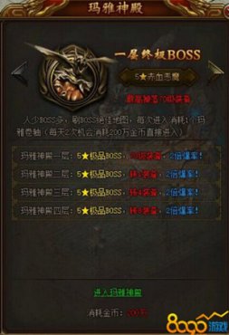 游戲屠龍榮耀中瑪雅神殿是可以刷新全系列BOSS哦,而且這里人少BOSS多,是一個(gè)不可多得的打BOSS好地方哦。最高掉落70級(jí)裝備,玩家每天有2次幾乎消耗200萬金幣直接進(jìn)入,不容錯(cuò)過。除了這里,更有極品圣殿開放,我們一起來看看吧。