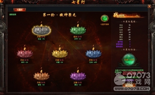進(jìn)入8090軍師聯(lián)盟后,玩家在主界面右下角成長系統(tǒng)一欄中可以找到七星燈按鈕,七星燈界面右下角注入燈油按鈕,大俠們可以選擇對應(yīng)七星燈進(jìn)行注入燈油,也會獲得七星燈相對應(yīng)的屬性。燈油是通過擊殺60級及以上的野怪和魏王疑冢內(nèi)怪物可以獲得,每日0點(diǎn)會重置未被消耗的燈油哦。
