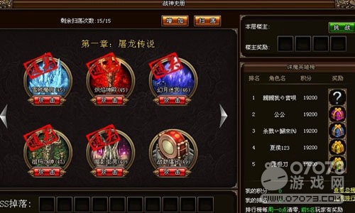 在蘿卜玩《烈火戰(zhàn)神》同一個(gè)幻境中,最快擊殺BOSS的玩家會(huì)成為樓主,樓主必定能得到一份豐厚的蘿卜玩《烈火戰(zhàn)神》靈珠獎(jiǎng)勵(lì),其他玩家也可以在史冊(cè)頁面中主動(dòng)挑戰(zhàn)樓主。而每闖過一個(gè)幻境,都會(huì)為玩家積累40點(diǎn)的積分。在整個(gè)服務(wù)器中積分排名前5的玩家,將會(huì)獲得一個(gè)高級(jí)魂石禮包,能夠開出最多3顆,最高7級(jí)的珍貴烈火戰(zhàn)神魂石。