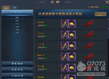 打開(kāi)界面后玩家可查看對(duì)應(yīng)到達(dá)條件與獎(jiǎng)勵(lì),完成對(duì)應(yīng)的條件可以獲得特殊獎(jiǎng)勵(lì)??梢詮淖詈?jiǎn)單的成就做起,如:熔煉、添加好友、添加仇人、死亡、降妖伏魔次數(shù)、登錄、劫鏢、押鏢,這些事非常簡(jiǎn)單的成就任務(wù)。玩家可以通過(guò)消耗成就點(diǎn)數(shù)、消耗金幣來(lái)升級(jí)勛章,沒(méi)個(gè)勛章最高5星。升級(jí)勛章可以大幅的增加玩家屬性,你還不趕緊開(kāi)始?