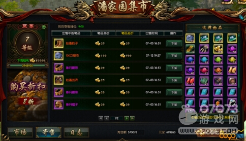 在潘家園市場里面,基本能買到所有東西,銀幣、元寶、裝備、技能秘籍、各種道具,應(yīng)有盡有。特別特別的,買東西能累計積分,積分到了自動提升集市等級,再買東西還會打折喲!游戲沒有商城,因為玩家在集市賣東西,還賣得很便宜,不僅如此,大部分東西都能通過集市寄售賣出去,商品琳瑯滿目。