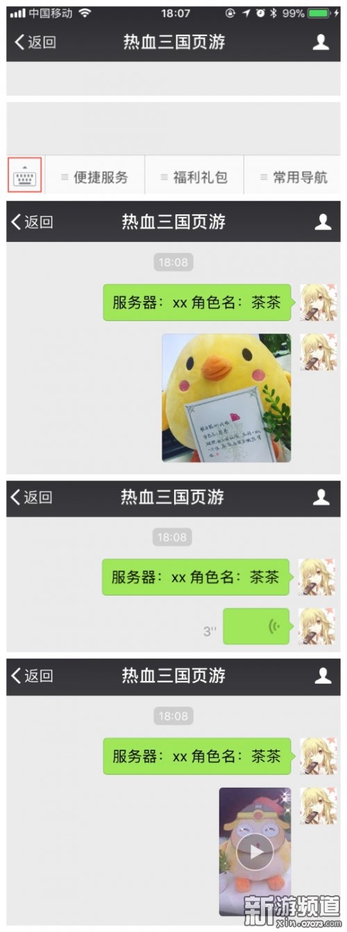 4.投稿格式:服務(wù)器+角色名+照片/語音/視頻/文章,參考: