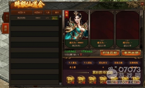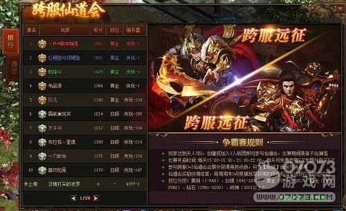 而無(wú)論戰(zhàn)斗的成功與否,參與跨服3V3仙道會(huì)的玩家都能夠額外獲得競(jìng)技點(diǎn)數(shù),可用于商城面板兌換道具。最終仙道會(huì)獎(jiǎng)勵(lì)將按周結(jié)算,在每周周末零點(diǎn)將根據(jù)玩家獲得段位積分發(fā)放段位和段位獎(jiǎng)勵(lì)?;顒?dòng)段位共分六種,分別是黃銅、白銀、黃金、鉑金、鉆石和戰(zhàn)神。