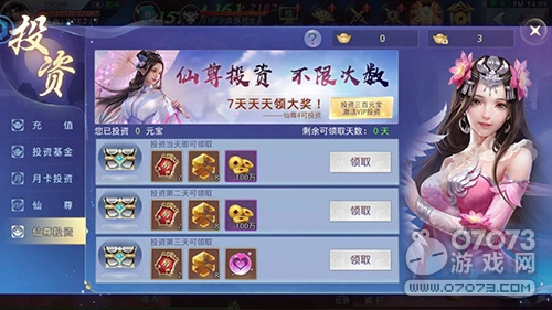 值得一提的是,達(dá)到仙尊級(jí)別的道友們還可以開啟為期七天仙尊投資,300元寶就可以每天免費(fèi)獲得2塊獵魔令、橙戰(zhàn)紋精華、高級(jí)法寶丹與100萬金幣等等極品道具,更為重要的一點(diǎn)是,仙尊投資是不限次數(shù)的,這真是廣大玩家的福音啊~