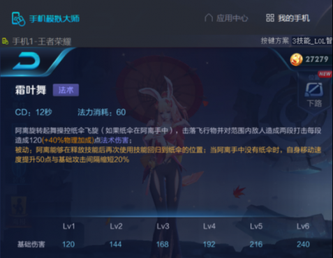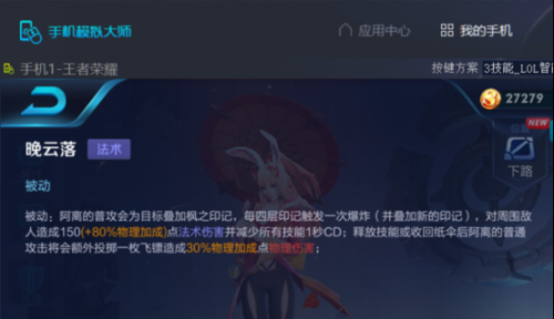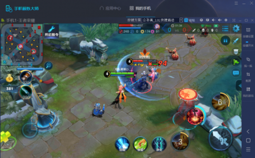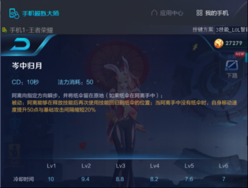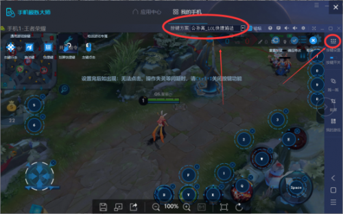4.啟動(dòng)游戲之后,虛擬手機(jī)頂部可以選擇對(duì)應(yīng)英雄的按鍵方案。推薦右鍵對(duì)應(yīng)英雄的LOL行走方式,鼠標(biāo)右鍵按住,指到哪里往哪里走。比WASD方向操作靈活。
