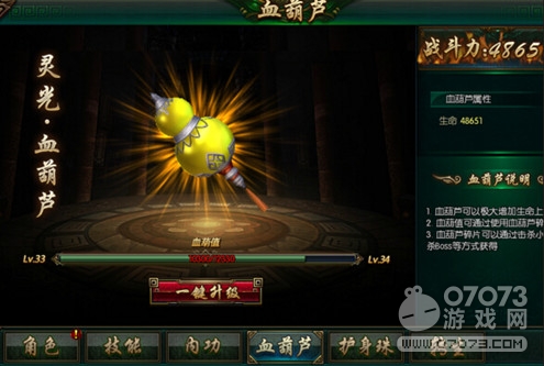 游戲中,生命是重要的屬性,沒有生命一切都成空。而且玩家又是去各大副本尋求寶貝,萬一碰上粽子怎么辦呢?血葫蘆就是專門增加生命的。升級血葫蘆等級也很簡單,只要血葫值足夠,就能一鍵升級。小怪和BOSS都會掉落大量的血葫碎片,使用即可得到血葫值。