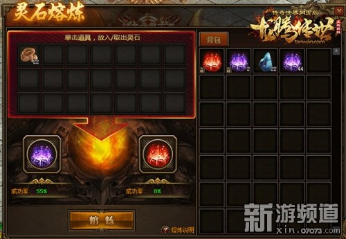 全新版本神爐大升級(jí),傳奇世界網(wǎng)頁(yè)版《龍騰傳世》開服30天后中州城中的神爐開放靈石熔爐功能,玩家可去NPC處熔煉靈石。投入低階靈石就可熔煉出命魂靈石和地魂靈石,數(shù)量越多,級(jí)別越高,熔煉的成功率就會(huì)越高,熔煉失敗投入的材料也會(huì)消失。從此再也不用為倉(cāng)庫(kù)中存儲(chǔ)的大量低階靈石犯愁了。