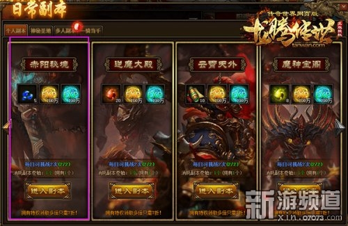 赤陽(yáng)秘境加入傳奇世界網(wǎng)頁(yè)版《龍騰傳世》日常副本系列,玩家可在此副本中獲得陽(yáng)魂碎片材料。全新玩法與眾不同,每擊殺一只 焚天·陽(yáng) 會(huì)增加一點(diǎn)陽(yáng)氣,每擊殺一只 幽魂·陰 會(huì)降低一點(diǎn)陽(yáng)氣。喜愛一路殺殺殺的玩家要小心了,關(guān)注陰陽(yáng)平衡才能更迅速的闖過(guò)秘境,增加陽(yáng)氣直至積滿,路障才會(huì)解除,擊殺BOSS赤陽(yáng)魔尊即可通過(guò)。