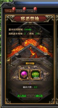 74級可以進(jìn)入的雷炎魔窟(每天可以進(jìn)入2次),過關(guān)報酬為提升英雄等級的英雄經(jīng)驗丹,最后是76級可以進(jìn)入的詛咒祭壇(每天可以進(jìn)入2次),過關(guān)報酬為提升主角暴擊幾率和暴擊傷害的龍魂。