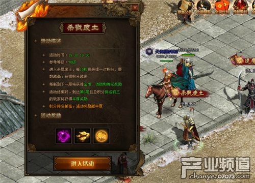 在殺戮廢土中,積分的多少影響著最后獎勵的獲取,積分最高者更有幾十萬的功勛入手,玩家們既要獲取自己的積分,更要阻礙對手的獲取,那么擊殺對手便是最有效的方式。而在這片絲毫沒有阻攔的廢土之上,一場場血戰(zhàn)拼殺就此上演,面積不大的廢土,便是你我的角斗場,是在隱蔽的位置躲藏,還是加入到群雄PK的戰(zhàn)局內,一切靠實力說話,從今晚開始,就加入到360uu《傳奇世界》網(wǎng)頁版的殺戮廢土中,這一次看誰活到最后!