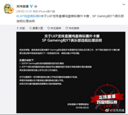 在外卡賽的時候就發(fā)布過一個針對2支戰(zhàn)隊違規(guī)的處理公告,據(jù)說是因為兩支隊伍打嘴炮導(dǎo)致的。(打個嘴炮就搞的這么隆重,要不要那么嚴啊?)