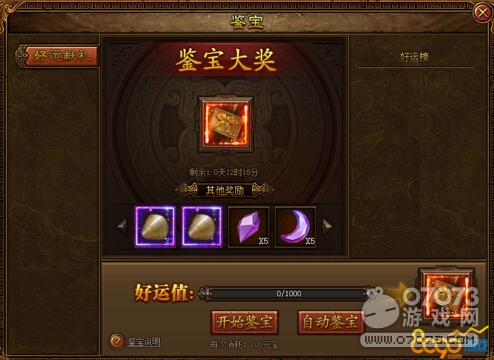 鑒寶除了大獎(jiǎng)絕版翅膀天帝光翼之外,也會(huì)開到龍鱗或者是其他的一些材料,總的來(lái)說(shuō),還是很劃算的。鑒寶的話會(huì)增加好運(yùn)值,好運(yùn)值一共有1000點(diǎn),每次鑒寶會(huì)消耗200元寶,增加10點(diǎn)好運(yùn)值,預(yù)計(jì)200塊左右就能開出絕版光翼!