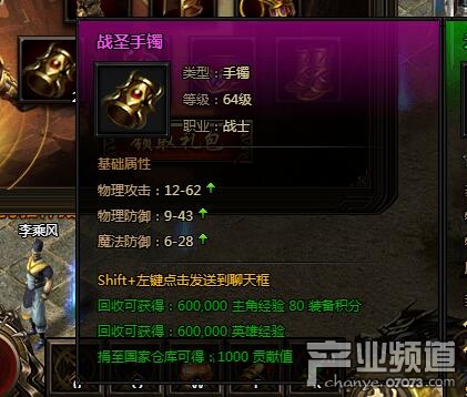 戰(zhàn)圣手鐲。64級戰(zhàn)士手鐲。提歐物理攻擊、物理防御以及魔法防御的略微增長。