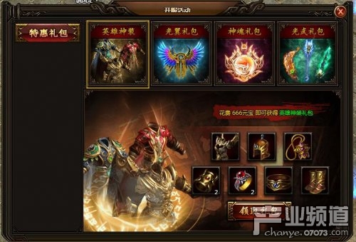 特惠禮包的獎(jiǎng)勵(lì)有四檔。分別是英雄神裝、光翼禮包、神魂禮包以及光武禮包。
