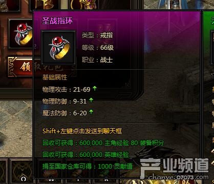 圣戰(zhàn)指環(huán)。66級戰(zhàn)士戒指。提歐物理攻擊、物理防御以及魔法防御的略微增長。