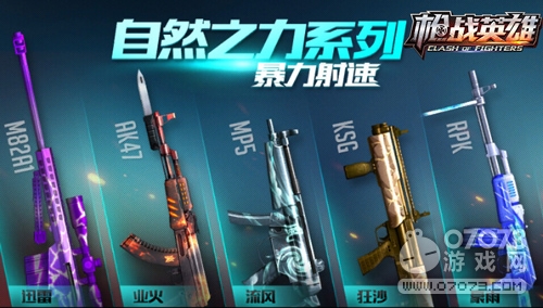 自然之力給名槍最大的火力提升,是全面飛躍的穩(wěn)定射速,讓你感受槍林彈雨橫掃戰(zhàn)場的威力!注入雨元素的機(jī)槍【RPK-豪雨】,槍如其名,不僅擁有超大的載彈量,強(qiáng)大的疾射火力也如同暴雨一般!【M82A1-迅雷】閃電出擊,它有著狙擊槍中最快的射速,穿甲爆頭能力得以飛躍,極佳的手感正讓它成為新一代狙擊之王!