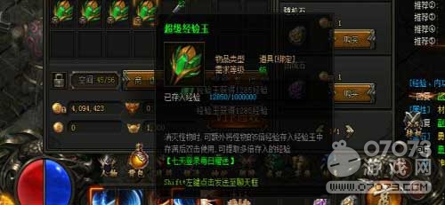 關于超級經(jīng)驗玉的介紹,系統(tǒng)說它是物品類型道具而且還是綁定的,也就意味著不能隨便交易。想要使用它需要等級達到65級,如何使用?蘿卜玩《炎龍傳奇》系統(tǒng)提示:消滅怪物時,可額外將怪物的5倍經(jīng)驗存入經(jīng)驗玉中,存滿后雙擊使用,可提取多倍存入的經(jīng)驗。也就是說超級經(jīng)驗玉不是生來就有經(jīng)驗值的,而是在消滅怪物的過程中積蓄起來的經(jīng)驗力量。那么一個經(jīng)驗玉可以存入多少經(jīng)驗值?1000000經(jīng)驗算多還是少呢?好像也不算多。