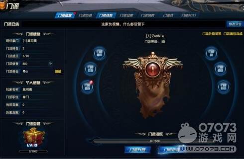 玩家角色等級達(dá)到52級,即可開啟門派系統(tǒng)。玩家可以通過消耗門派貢獻(xiàn)升級門派技能,門派技能可增加人物屬性,門派等級越高可升級的上限等級越高。玩家可以將自己多余的裝備放入門派倉庫中,放入的裝備品質(zhì)和等級越高,獲得的捐獻(xiàn)值最高!