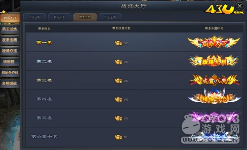 參與每天的前10場跨服賽還可獲得豐厚獎勵哦!所以小伙伴們可要鎖定好活動開啟時間哈!除了這些,玩家還可以根據(jù)自己的段位來領取相應的威望和元寶獎勵,段位越高,每天領取的獎勵就越多!