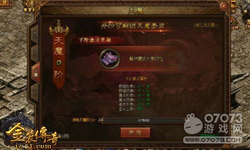 若想對(duì)抗怪物BOSS們,顯然你需要強(qiáng)大裝備的支撐。當(dāng)51《金裝傳奇》開(kāi)服到第2天且玩家等級(jí)達(dá)到90級(jí)時(shí),天魔等階自動(dòng)開(kāi)啟,玩家可消耗天魔積分提升天魔等階,天魔等階越高,則可獲得更多的屬性加成,且可解鎖新的天魔裝備部位,天魔積分則可以通過(guò)達(dá)。