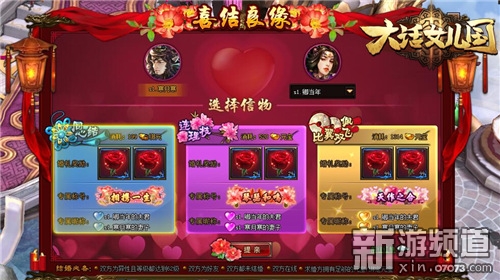 求婚方選擇好定情信物向心儀者求婚,待對方接受后即可獲得紅娘送上的大紅包,內(nèi)含大量綁定元寶,就看你們能搶到多少咯!系統(tǒng)還特別設(shè)置了婚禮記錄功能,可以記錄你們是全服第幾位結(jié)發(fā)的夫妻。挑選個(gè)黃道吉日,和自己心愛的TA來場羨煞旁人的婚禮吧!