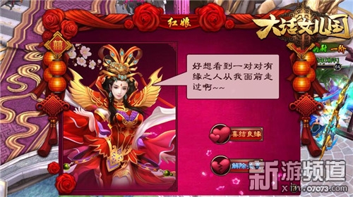 “友達(dá)以上,戀人未滿;甜蜜心煩,愉悅混亂。”S.H.E的一首《戀人未滿》道出暗戀者的心酸。每個(gè)人都希望自己的愛情能夠開花結(jié)果,但現(xiàn)實(shí)中總是有些許無奈,或許是朋友做太久,就錯(cuò)過了愛情。但在《大話女兒國》里,你不會(huì)輕易的錯(cuò)過愛情,你所結(jié)交的每一位異性好友都有可能成為你未來的另外一半哦!當(dāng)角色等級達(dá)到46級后將開啟“情定三生”,它預(yù)示著單身的有情人可以開始尋覓自己的良緣;角色等級達(dá)到62級,便可在自己的單身異性好友中選擇心儀的一位單身者,攜帶好定情信物到紅娘處提親。