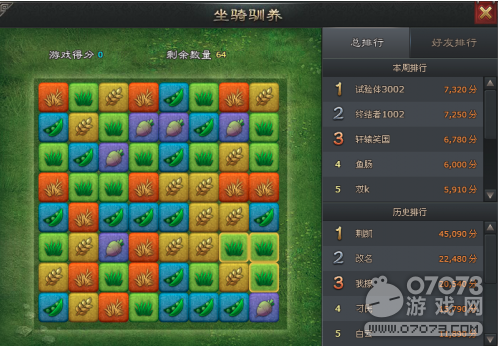 馴養(yǎng)游戲?yàn)橐粋€(gè)消除小游戲,消除的規(guī)則為:兩個(gè)以上相鄰?fù)N圖標(biāo)即可點(diǎn)擊進(jìn)行消除。