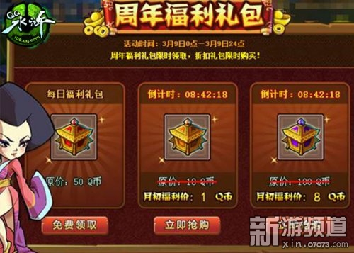 梁山盛典大回饋!一年一次好福利!《QQ水滸》周年慶歡樂來(lái)襲,梁山上的好禮全民大派送。免費(fèi)禮包領(lǐng)不停,全新活動(dòng)送不停,優(yōu)惠反饋賺不停!3月15日《QQ水滸》等你一起來(lái)分好東西!