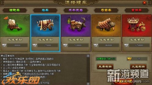 每個鏢師都有段傳奇經(jīng)歷,歡樂園《三國之志2》押運軍糧活動一共有五種品質(zhì)的鏢車供玩家們選擇,從綠色到紅色,獎勵的檔次也不斷的在提升,10萬到200萬的鏢銀十分誘人,不過一開始押送官并不舍得給我們最高品質(zhì)的鏢車,想要多賺點外快的玩家可以拿點元寶賄賂一下,等他一高興,什么都好商量。