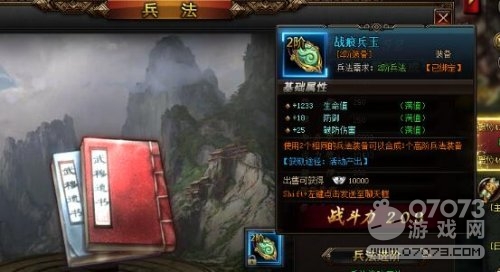 回過頭來看一看,我們進階到二階時獲得二階的裝備戰(zhàn)痕兵玉,各種基礎(chǔ)屬性又會產(chǎn)生大幅的提升,戰(zhàn)斗力直接增加209。傲天我是皇游戲兵法裝備的獲取通常都是活動產(chǎn)出,暫時還沒有發(fā)現(xiàn)其他的什么途徑。