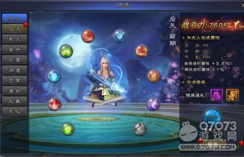 游戲中,完成不同任務獲得星辰之力,可修煉功法。功法分為凡人,后天,先天,金丹,元嬰,洞虛,空冥,渡劫,大乘,天仙。不同功法擁有不同屬性加成,外觀線屬性也無限加成哦!功法達到一定層次后,進入轉生界面,需要人物等級和通關相應的星辰仙途層數(shù)才能轉生。