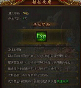 懸賞任務(wù)也是升級(jí)重要途徑,懸賞任務(wù)主要包括精英懸賞、BOSS懸賞以及降魔懸賞,顧名思義,所謂精英懸賞,指的是目標(biāo)全是精英BOSS,BOSS懸賞的目標(biāo)全是BOSS,降魔懸賞的目標(biāo)是特定地圖的怪物,難度都不是很大。每種任務(wù)每天都有次數(shù)限制,一定要將所有次數(shù)都用掉,畢竟給的經(jīng)驗(yàn)非常多。