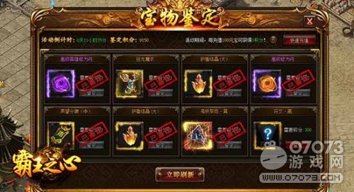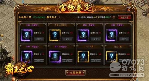 寶物鑒定玩法中,每一次系統(tǒng)都會(huì)自動(dòng)刷新出八個(gè)未知物品,需要玩家消耗積分來(lái)開(kāi)啟鑒定。未知物品包括高級(jí)符文、高階裝備、特殊材料等等,玩家可以根據(jù)自己的需要來(lái)選擇鑒定。