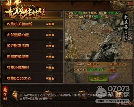 為什么說(shuō)貪玩?zhèn)髌媸澜缇W(wǎng)頁(yè)版《龍騰傳世》藏寶圖這么受玩家喜愛(ài)?第一,自然是因?yàn)楂@取他的方式相對(duì)簡(jiǎn)單且成本低;第二,說(shuō)起來(lái)藏寶圖獎(jiǎng)勵(lì)那可是相當(dāng)豐富,大量紅色武器、100W經(jīng)驗(yàn)箱、金珠精華、靈獸丹等都可以通過(guò)挖圖得到;第三,挖寶還存在多種驚喜因素,特別是能夠挖出boss時(shí),這個(gè)bOSS只有你能,別人搶都不能搶?zhuān)遣皇翘貏e棒。