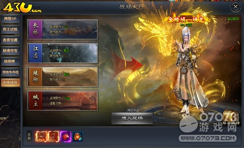 在43u《瑯琊榜2》中,開服的第3天20:00-20:30,之后的每周六20:00-20:30會開啟金陵城戰(zhàn)活動,所有玩家均可參與,沒有加入勢力的玩家可以進入觀戰(zhàn)來獲得經驗收益,未加入勢力的玩家在城中央可加入勢力開啟戰(zhàn)斗。