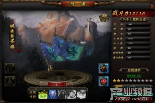 簡單看看一階颯爽英姿旗,擁有2個戰(zhàn)旗技能,以及四個戰(zhàn)旗配飾的鑲嵌位置。在此小編要提醒大家一下,每一階的提升可以收獲一定的獎勵,其中包括戰(zhàn)旗裝備。看看下面傲天我是皇小編從三階直接上升到四階時候的情形吧。