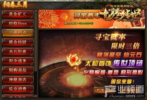 活動(dòng)期間每天19:00將在BOSS秘境中刷新BOSS,海量元神經(jīng)驗(yàn)只要參與就有機(jī)會(huì)得到。尋寶概率也會(huì)再活動(dòng)期間翻倍,太初套裝,特戒鋼紋,仙元石、碧落星空,乾坤遁書-移形換影、化身蝙蝠、遁地以及傳世靈器*項(xiàng)鏈碎片可增幅基礎(chǔ)屬性130%,對(duì)職業(yè)額外免傷比,降低裝備掉落概率。神器之名不是騙人的。貪玩?zhèn)髌媸澜纭洱堯v傳世》尋寶1000次以上還能參與摸金校尉排行榜,極品裝備直接就送你。